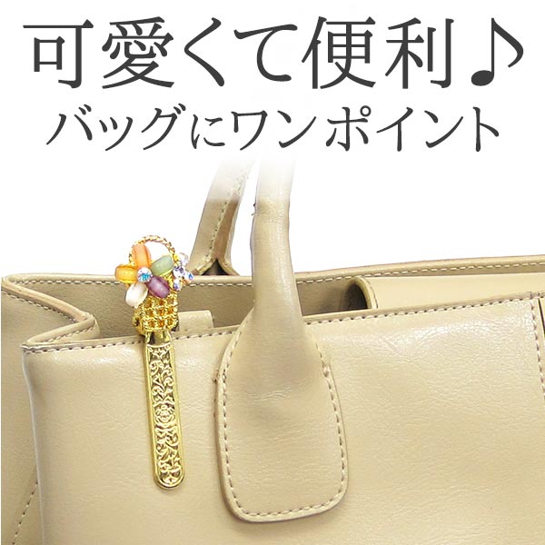 詳 細 マルチ・キークリップ 可愛いモチーフとキラキラビジューのアクセサリークリップは、鍵や小物を取付けて管理するのにとても便利! 洋服やバッグのポケットなどにクリップを挟めば、取り付けた小物が鞄やポケットの奥で迷子になるのを防ぐ事ができます。