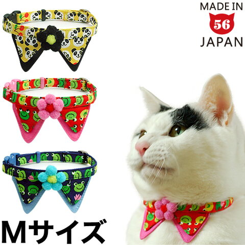 やわらかデニム動物プリントちょこえり猫首輪 Mサイズ かわいい襟付き 猫用首輪 蝶ネクタイ