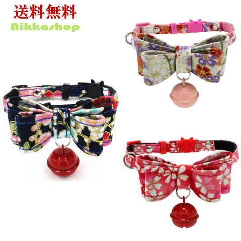 猫用首輪 和風 調節可能 リボンカラー 猫首輪【ネックレス/ドッググッズ/蝶ネクタイ/猫グッズ/アクセサリー/犬猫首輪】【結婚式/ウェディング/お祝い/記念パーティー/制服】【メール便送料無料】
