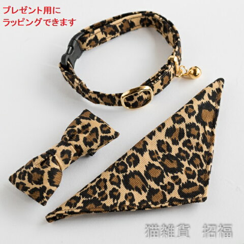 猫 首輪 リボン 鈴 豹柄 蝶ネクタイ バンダナ セーフティ 安全ベルトセット 【猫雑貨招福】