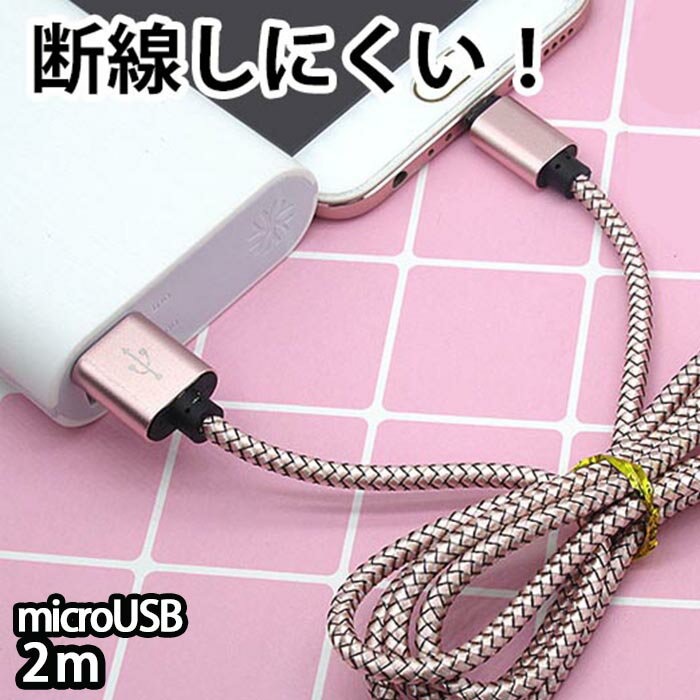 microUSBケーブル 断線しにくい USB 2m 充電 ケーブル 充電器 断線防止 android アンドロイド 充電ケーブル 頑丈